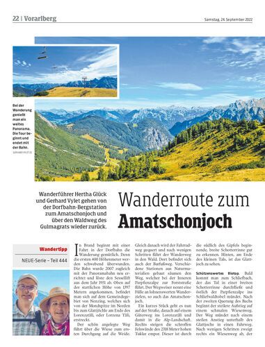 Wanderführer Hertha Glück und Gerhard Vylet gehen von der Dorfbahn-Bergstation zum Amatschonjoch und über den Waldweg des Gulmagrats wieder zurück.