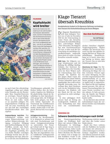 Hundehalterin fordert in Zivilprozess Haftung von beklagtem Tierarzt für Kieferfehlstellung bei ihrem Welpen.