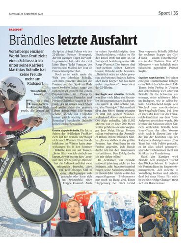 Vorarlbergs einziger World-Tour-Profi zieht einen Schlussstrich unter seine Karriere. Matthias Brändle hat keine Freude mehr am Radsport.