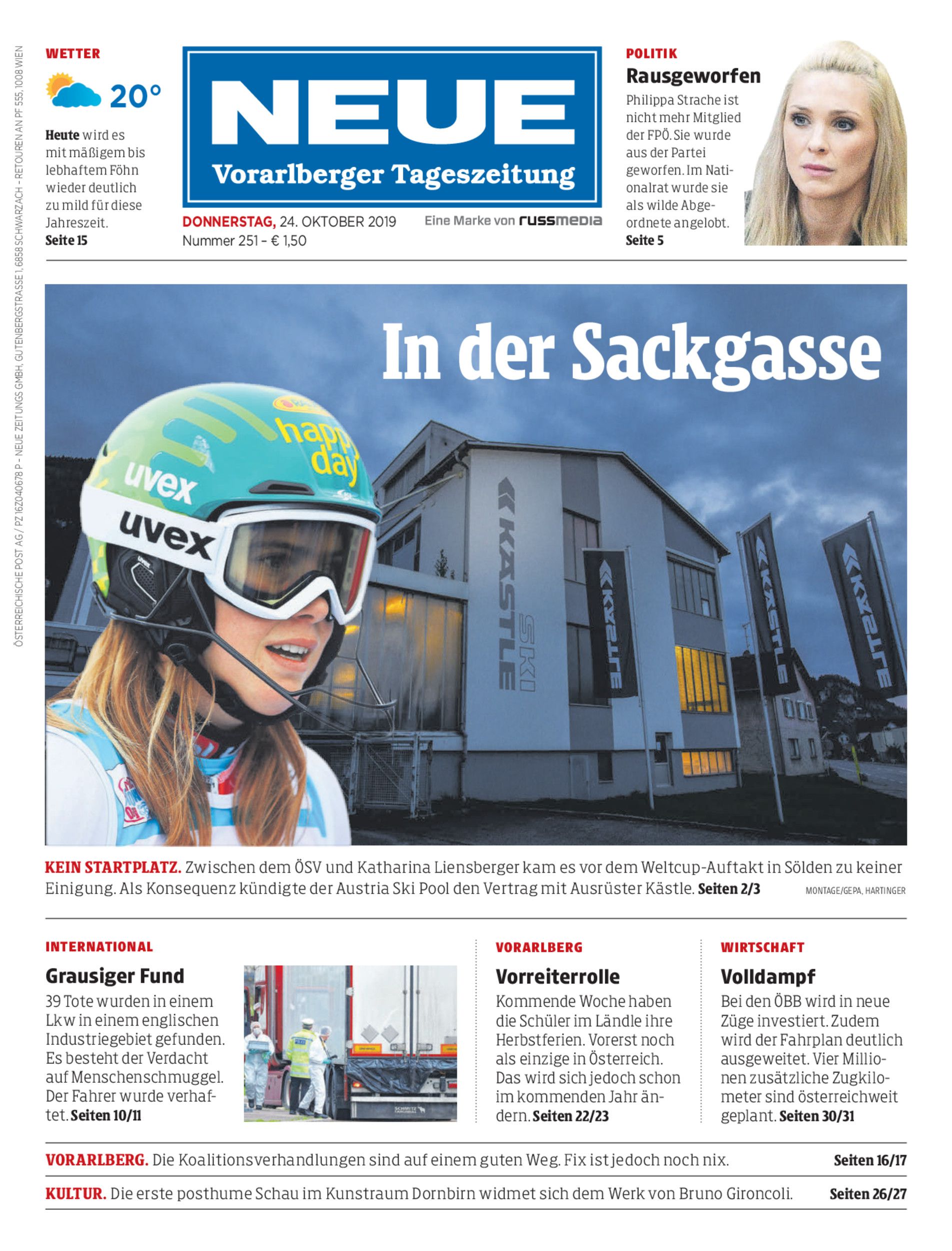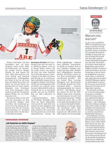 Kein Startplatz. Zwischen dem ÖSV und Katharina Liensberger kam es vor dem Weltcup-Auftakt in Sölden zu keiner Einigung. Als Konsequenz kündigte der Austria Ski Pool den Vertrag mit Ausrüster Kästle. Seiten 2/3 Montage/Gepa, Hartinger