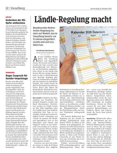 Bundesweite Herbstferien-Regelung basiert auf Modell, das in Vorarlberg bereits vor 15 Jahren eingeführt wurde und sich etabliert hat.