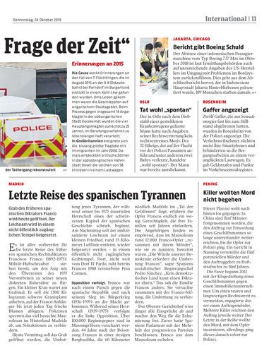 Grab des früheren spanischen Diktators Franco wird heute geöffnet. Der Leichnam wird in einem nicht öffentlich zugänglichen Tempel beigesetzt.