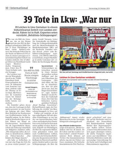 39 Leichen in Lkw-Container in einem Industrieareal östlich von London entdeckt. Fahrer ist in Haft. Experten orten verstärkt „Behältnis-Schleppungen“.