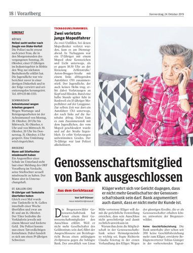 Kläger wehrt sich vor Gericht dagegen, dass er nicht mehr Gesellschafter der Genossenschaftsbank sein darf. Bank argumentiert auch damit, dass er nicht mehr ihr Kunde ist.