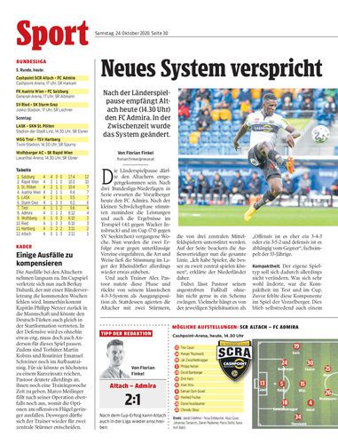 Nach der Länderspielpause empfängt Altach heute (14.30 Uhr) den FC Admira. In der Zwischenzeit wurde das System geändert.