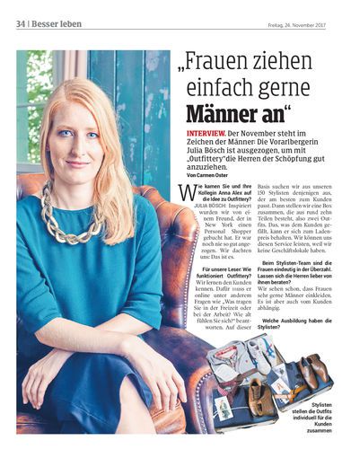 Der November steht im Zeichen der Männer: Die Vorarlbergerin Julia Bösch ist ausgezogen, um mit „Outfittery“die Herren der Schöpfung gut anzuziehen. Von Carmen Oster