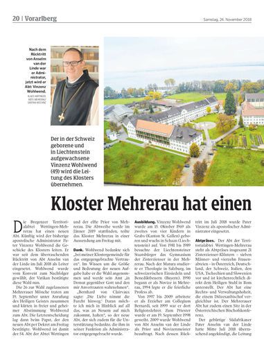 Der in der Schweiz geborene und in Liechtenstein aufgewachsene Vinzenz Wohlwend (49) wird die Leitung des Klosters übernehmen.
