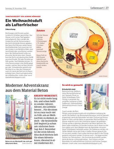 Kreativ-Werkstatt. Es ist nicht mehr lang hin, und schon heißt es wieder: Advent, Advent, ein Lichtlein brennt ... Für die einen ist es zwar noch viel zu früh, um an Weihnachten zu denken, jedoch – die besinnliche Zeit beginnt ja schon am nächsten Sonntag: Am 2. Dezember ist der erste Advent. Also doch höchste Zeit für einen Adventskranz, diesmal in einer modernen Art.