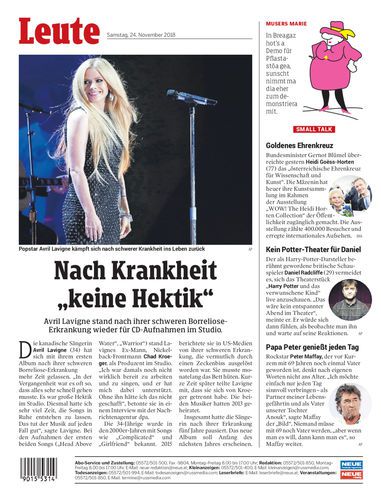 Avril Lavigne stand nach ihrer schweren Borreliose-Erkrankung wieder für CD-Aufnahmen im Studio.