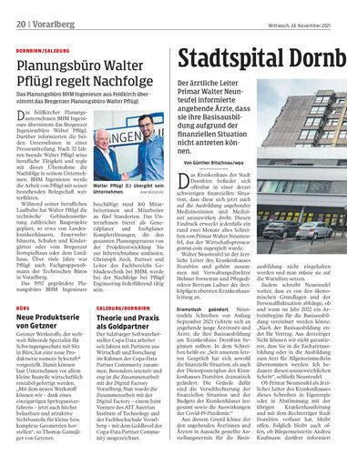 Das Planungsbüro BHM Ingenieure aus Feldkirch übernimmt das Bregenzer Planungsbüro Walter Pflügl.