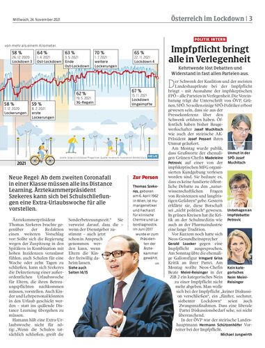 Neue Regel: Ab dem zweiten Coronafall in einer Klasse müssen alle ins Distance Learning. Ärztekammerpräsident Szekeres kann sich bei Schulschließungen eine Extra-Urlaubswoche für alle vorstellen.