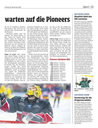 Vor den Pioneers Vorarlberg liegt ein Wochenende mit zwei Auswärtsspielen. Heute gastieren die Feldkircher bei Tabellenführer Linz, am Sonntag beim HCB Südtirol.