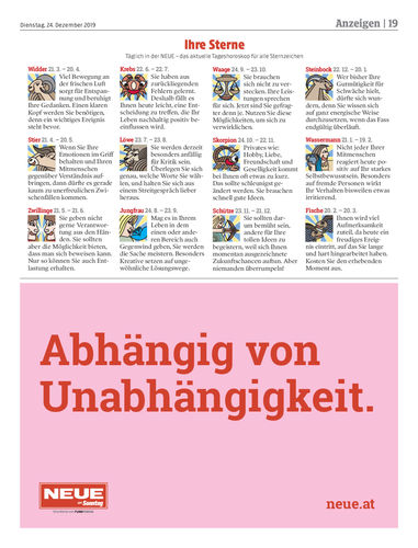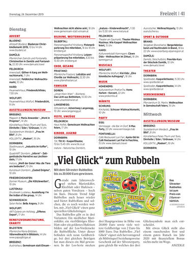 Heiliger Abend. Der gebürtige Feldkircher Robert Erhart hat das Titelbild im ARTelier Loackerhuus der Lebenshilfe entworfen. Die Redaktion der NEUE wünscht Ihnen frohe Weihnachten und erholsame Feiertage. Seiten 4/5 Klaus Hartinger