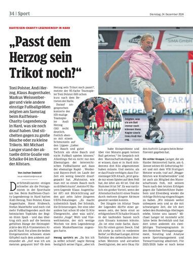 Toni Polster, Andi Herzog, Klaus Augenthaler, Markus Weissenberger und viele andere einstige Fußballgrößen zeigten am Samstag beim Raiffeisen-Charity-Legendencup in Hard, was sie noch drauf haben. Und stichelten gegen zu große Bäuche oder zu kleine Trikots. Mit Michael Langer stand der aktuelle dritte Goalie von Schalke 04 im Kasten der Allstars.