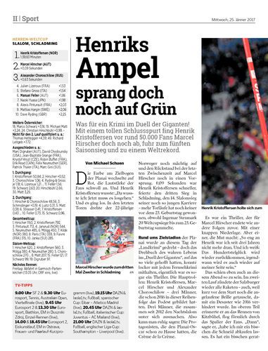 Was für ein Krimi im Duell der Giganten! Mit einem tollen Schlussspurt fing Henrik Kristoffersen vor rund 50.000 Fans Marcel Hirscher doch noch ab, fuhr zum fünften Saisonsieg und zu einem Weltrekord.