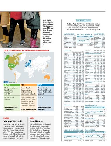 Während in Österreich das Volksbegehren gegen Ceta und TTIP läuft, hat das Freihandelsabkommen mit Kanada den EU-Handelsausschuss passiert. US-Ausstieg aus Asien-Pazifik-Abkommen sorgt für Aufregung.