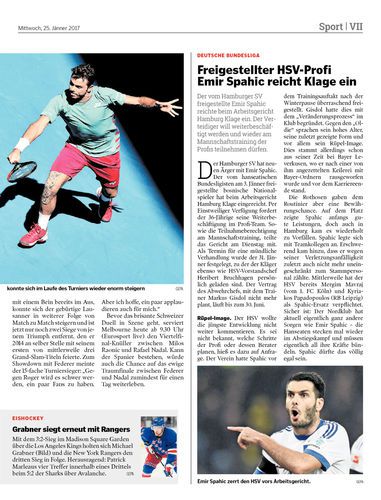 Der vom Hamburger SV freigestellte Emir Spahic reichte beim Arbeitsgericht Hamburg Klage ein. Der Verteidiger will weiterbeschäftigt werden und wieder am Mannschaftstraining der Profis teilnehmen dürfen.