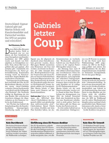 Sigmar Gabriel verzichtet auf die SPD-Kanzlerkandidatur. Eine weise Entscheidung. Er wäre wohl wirklich nicht der Richtige gewesen. Aber ist es Martin Schulz?