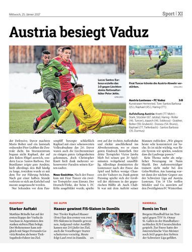 Austria Lustenau gewinnt das zweite Testspiel im Jahr 2017 gegen den FC Vaduz mit 3:0. Trainer Lassaad Chabbi sieht dabei viele gute Ansätze seiner Elf.