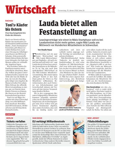 Presseschau ZUM NIKI-KAUF DURCH LAUDA