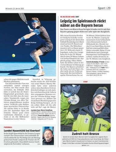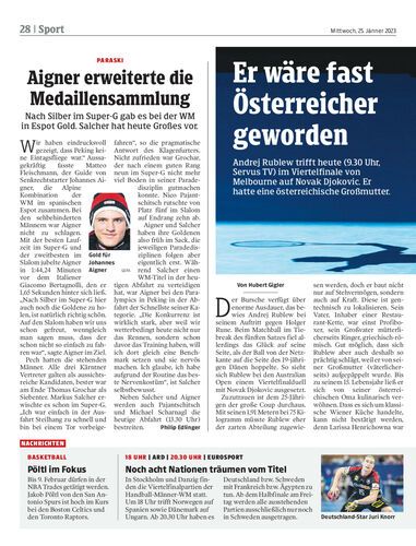 Andrej Rublew trifft heute (9.30 Uhr, Servus TV) im Viertelfinale von Melbourne auf Novak Djokovic. Er hatte eine österreichische Großmutter.