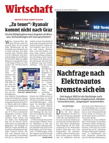 Irische Billigfluglinie baut Angebot ab Wien aus, Verhandlungen mit Graz gescheitert.