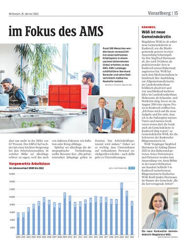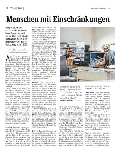 AMS-Landesgeschäftsführer Bernhard Bereuter und seine Stellvertreterin Katharina Neuhofer präsentierten das Arbeitsprogramm 2023.