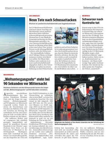 Nukleare Gefahren und der Klimawandel lassen die Zeiger auf der „Weltuntergangsuhr“ auf 90 Sekunden vorrücken.