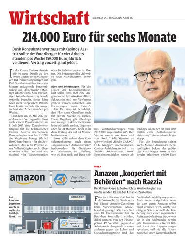 Dank Konsulentenvertrags mit Casinos Austria sollte der Vorarlberger für vier Arbeitsstunden pro Woche 150.000 Euro jährlich verdienen. Vertrag vorzeitig aufgelöst.