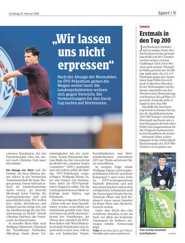 Nach der Absage der Neuwahlen im ÖTV-Präsidium gehen die Wogen weiter hoch: Die Landespräsidenten wehren sich gegen Vorwürfe. Die Vorbereitungen für den Davis Cup laufen auf Hochtouren.