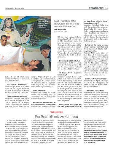 Interview. Auf der Suche nach Heilung begibt sich Journalist Thomas Bruckner auf den Weg durch den Dschungel der Alternativmedizin. Der Tumor ist nicht verschwunden, das Weltbild dennoch etwas erschüttert.