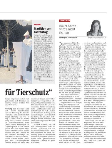 Landesrat Christian Gantner reagiert mit einer Geschichte auf die Kälber-Debatte, und der VGT fordert seinen Rücktritt.