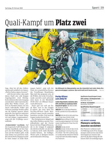 Das möglicherweise letzte Ländle-Derby dieser AHL-Saison steigt heute Abend in der Lustenauer Rheinhalle. Vor drei Tagen behielt der ECB im Penaltyschießen die Oberhand.