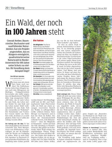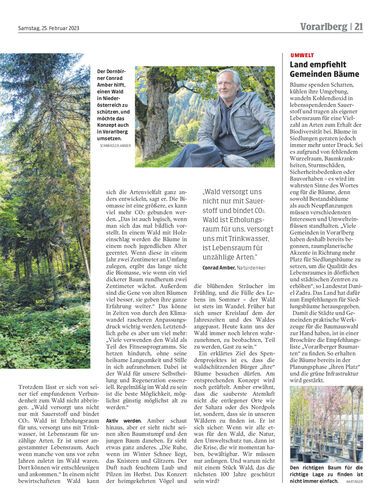 Conrad Amber, Baumstreiter, Buchautor und saalfüllender Naturdenker, hat ein Projekt angestoßen, das es Bürgern ermöglicht, quadratmeterweise Naturwald in Niederösterreich für 100 Jahre unter Schutz zu stellen. Ob Vorarlberg dem Beispiel folgt?
