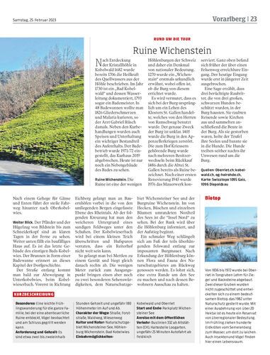 Wanderführer Hertha Glück und Gerhard Vylet wandern ab dem Wichensteiner See hinauf nach Kobelwald, weiter zur Ruine Wichenstein und dem See entlang retour.