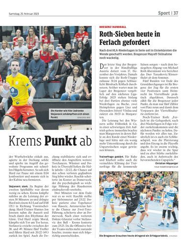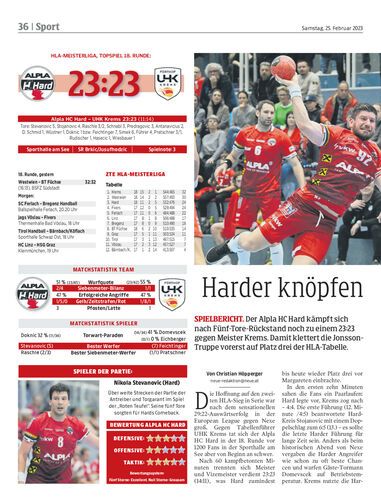 Spielbericht. Der Alpla HC Hard kämpft sich nach Fünf-Tore-Rückstand noch zu einem 23:23 gegen Meister Krems. Damit klettert die Jonsson-Truppe vorerst auf Platz drei der HLA-Tabelle.