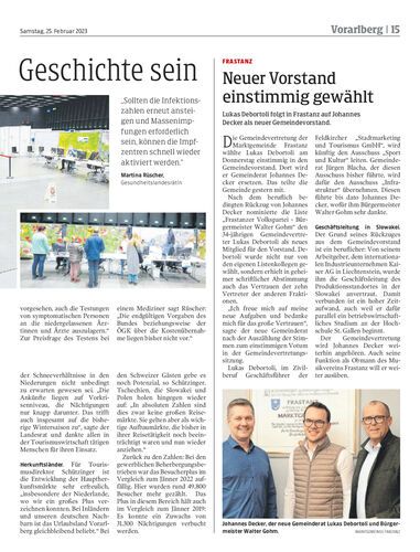 Lukas Debortoli folgt in Frastanz auf Johannes Decker als neuer Gemeindevorstand.