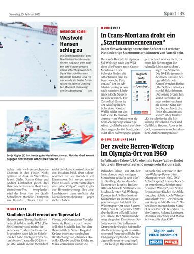 In Palisades Tahoe (USA), ehemals Squaw Valley, findet heute ein Riesentorlauf und morgen ein Slalom statt.