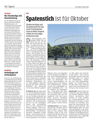 Förderverträge und Grunderwerb für das neue Trainingszentrum in Wien-Aspern sollen im Juni abgeschlossen sein.