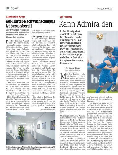 In der Eliteliga hat das Schlusslicht aus Dornbirn den Leader aus Bregenz zu Gast. Hohenems kann zu Hause vorzeitig das Play-off-Ticket lösen. Zum Frühjahrsauftakt in der Vorarlbergliga steht heute fast eine komplette Runde am Programm.
