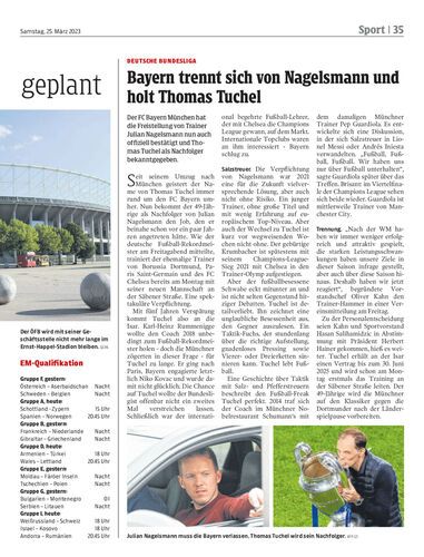 Der FC Bayern München hat die Freistellung von Trainer Julian Nagelsmann nun auch offiziell bestätigt und Thomas Tuchel als Nachfolger bekanntgegeben.