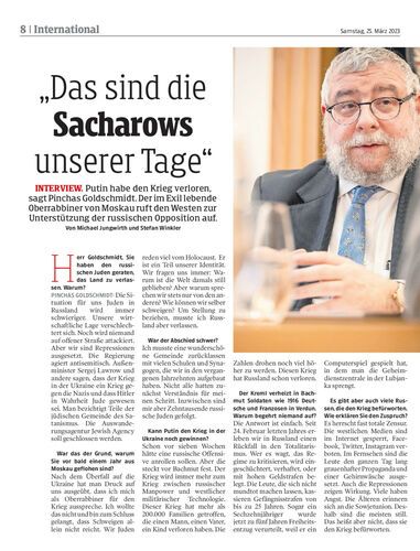 Putin habe den Krieg verloren, sagt Pinchas Goldschmidt. Der im Exil lebende Oberrabbiner von Moskau ruft den Westen zur Unterstützung der russischen Opposition auf. Von Michael Jungwirth und Stefan Winkler