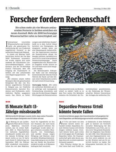 Die schon mehr als vier Monate andauernden Proteste in Serbien erreichen ein neues Ausmaß. Mehr als 3000 hochrangige Wissenschaftler rufen zu Gerechtigkeit auf.