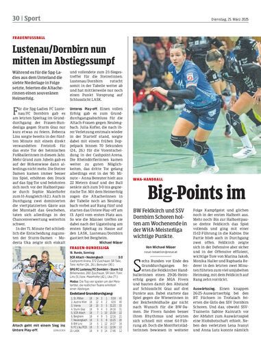 Während es für die Spg-Ladies aus dem Unterland die siebte Niederlage in Folge setzte, feierten die Altacherinnen einen souveränen Heimerfolg.