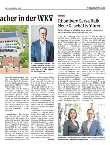 Bei der Rhomberg Sersa Rail Group kommt es ab 1. April zu einem Personalwechsel im Projektgeschäft.