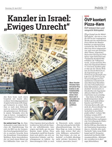 Kontrastprogramm für den Kanzler: Erst gedachte Christian Kern bei seiner Israel-Reise der Opfer des Holocaust, danach drehte er eine Runde in einem selbstfahrenden Auto. Heute trifft er Israels Premier.