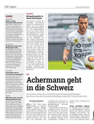 wechselt von den Dornbirn Bulldogs zum EHC Visp in die NLB.