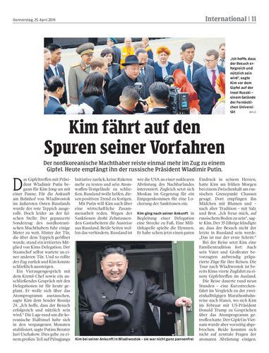 Der nordkoreanische Machthaber reiste einmal mehr im Zug zu einem Gipfel. Heute empfängt ihn der russische Präsident Wladimir Putin.