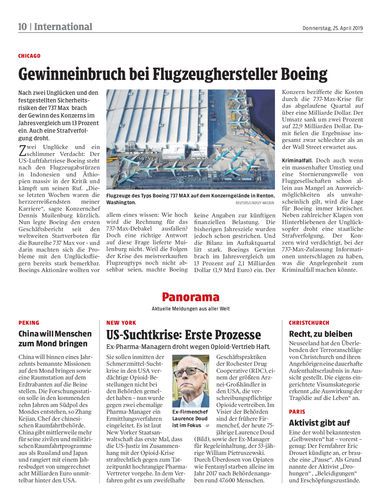 Nach zwei Unglücken und den festgestellten Sicherheitsrisiken der 737 Max brach der Gewinn des Konzerns im Jahresvergleich um 13 Prozent ein. Auch eine Strafverfolgung droht.