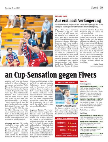In einem packenden Cup-Fight hat Bregenz lange Zeit die Hand am Sieg. Erst in der Schlussphase müssen sich Frühstück & Co. den Fivers beugen.